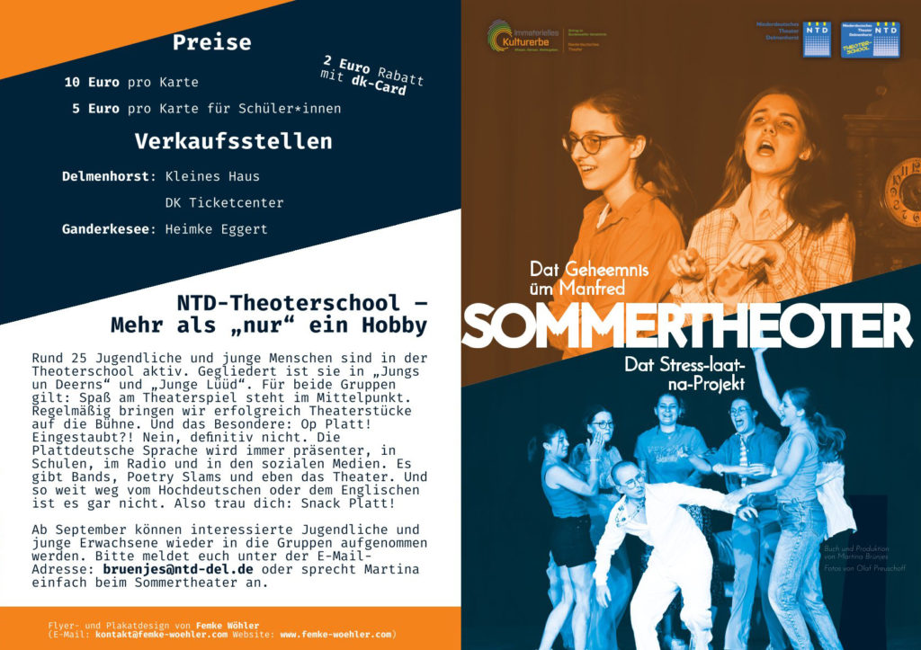 Das Niederdeutsche Theater Delmenhorst veranstaltet am ersten September-Wochenende wieder ein Sommertheater mit Freilichtaufführungen der bühneneigenen Theoterschool.